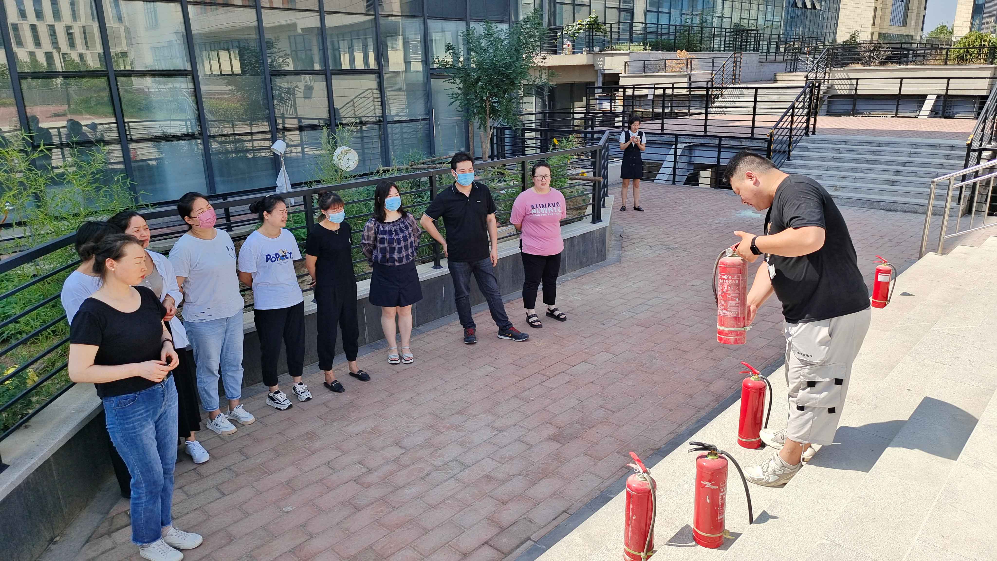 本次培训以实践为主,通过开篇的教学,员工已经初步掌握灭火器的实际使用方法