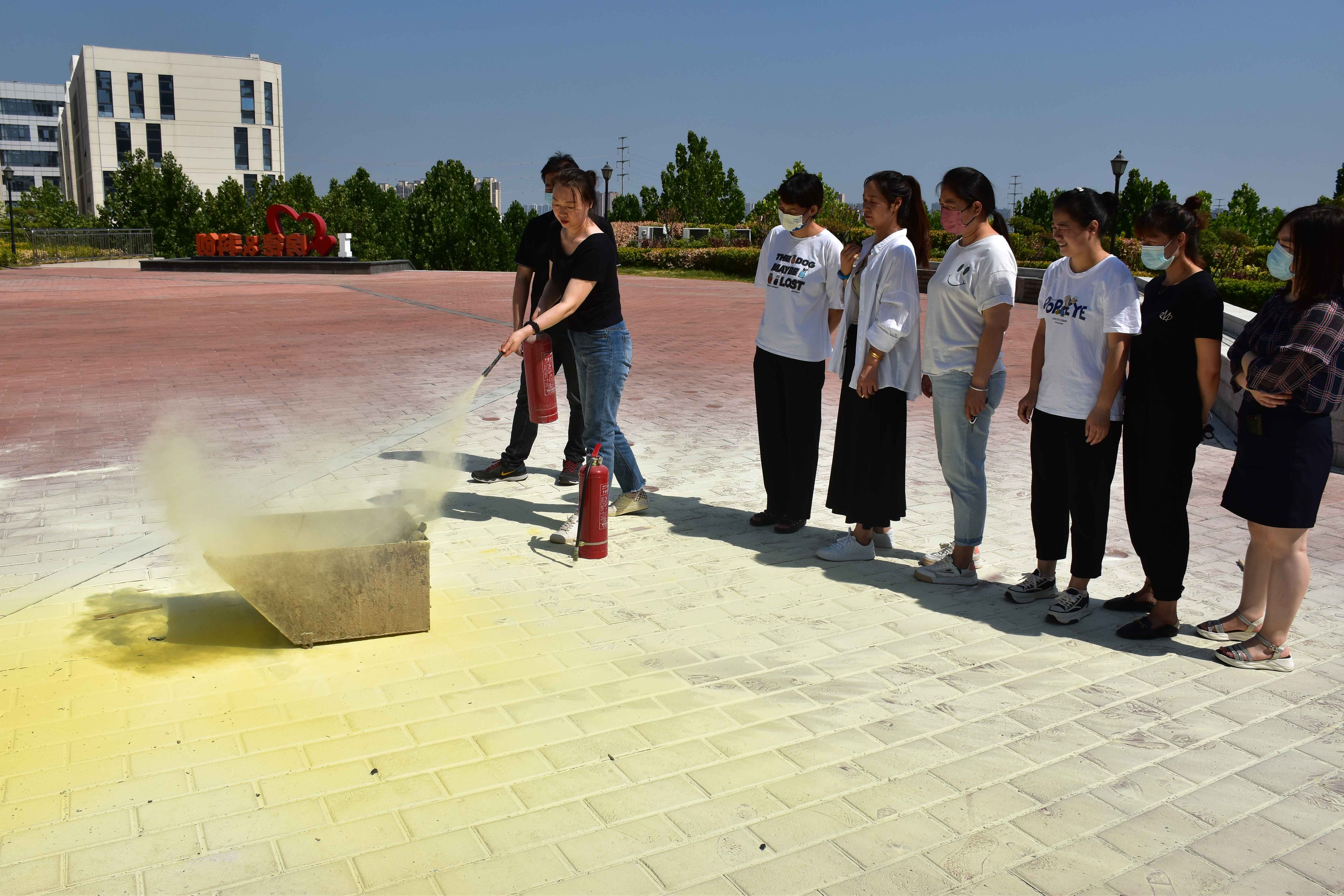 每位员工都会通过实际操作,来熟悉灭火器的使用